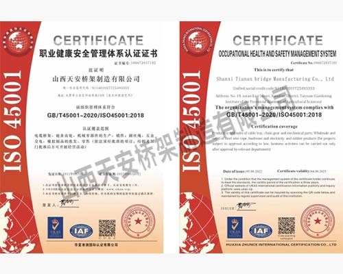 山西天安橋架制造有限公司是一家生產電纜橋架、母線槽的大型廠家,主要生產:槽式橋架、托盤式橋架、梯級式橋架、大跨距橋架、母線槽有空氣型、密集型、耐火型、鋁合金等以及通風管、可根據客戶要求定制各種型號各種規格,表面處理有熱鍍鋅、防火噴塑、防火漆、熱鍍鋅等,產品廣泛應用于石油、化工、治金、電力、紡織、通訊、高層建筑等各個領域。產品具有外形美觀,耐腐蝕性強,安裝靈活方便,品種齊全等特點。